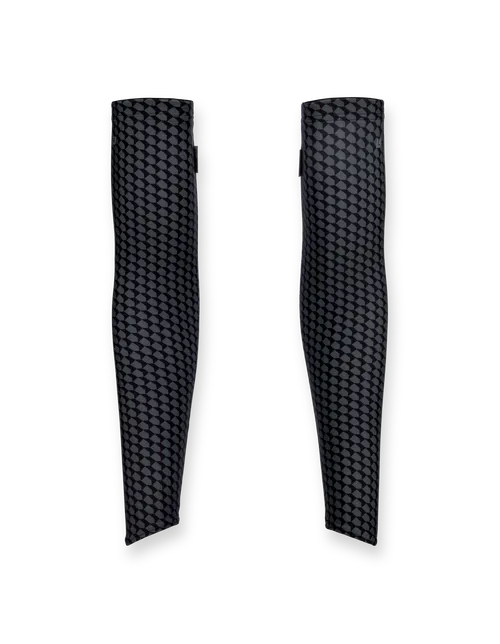 Nauw aansluitende armwarmers die gemakkelijk om en af te doen zijn.